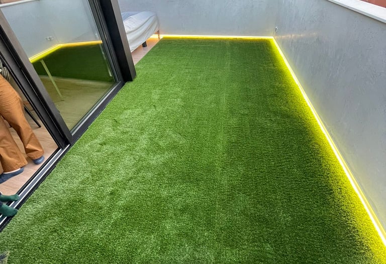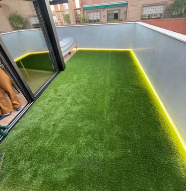 Explora nuestras instalaciones de césped artificial en jardines, terrazas y áreas de juego, donde la estética y la funcionalidad se unen para crear ambientes únicos y sostenibles.